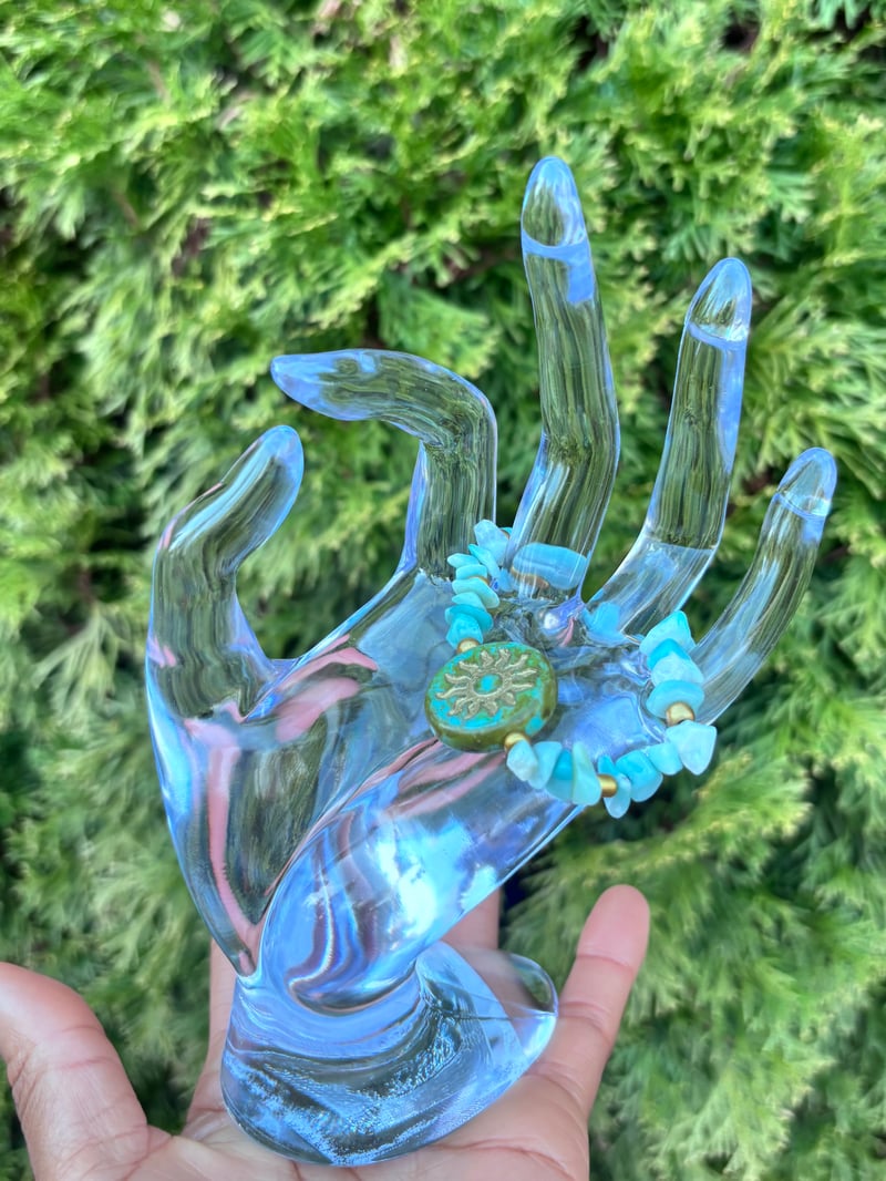 singular bracelet made with amazonite + czech glass sun