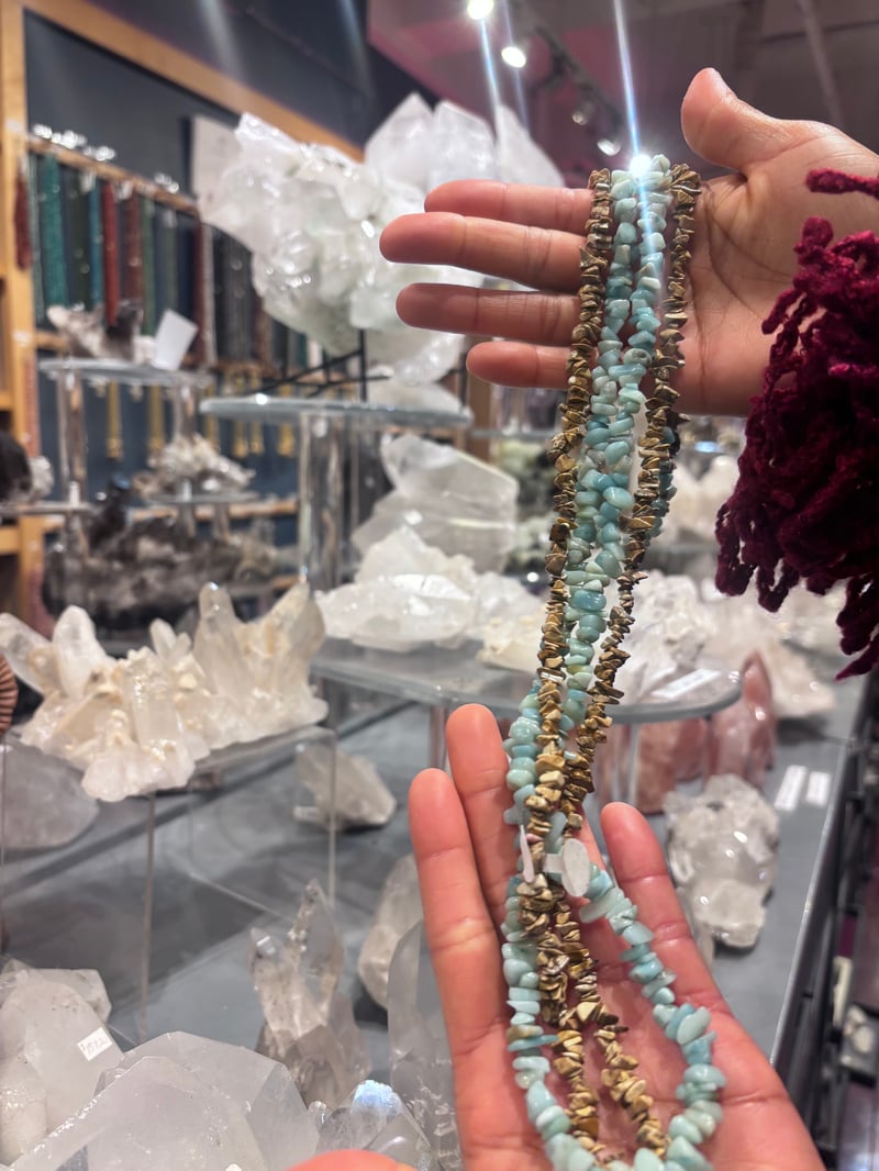 Amazonite is a radiant blue stone that carries the energies of balance & communication - precisely what I feel when I’m in the water. A deep connection to God, my higher self, & the ancestral plane. Jasper is a protective crystal, said to shield the aura & provide a sense of comfort + security.