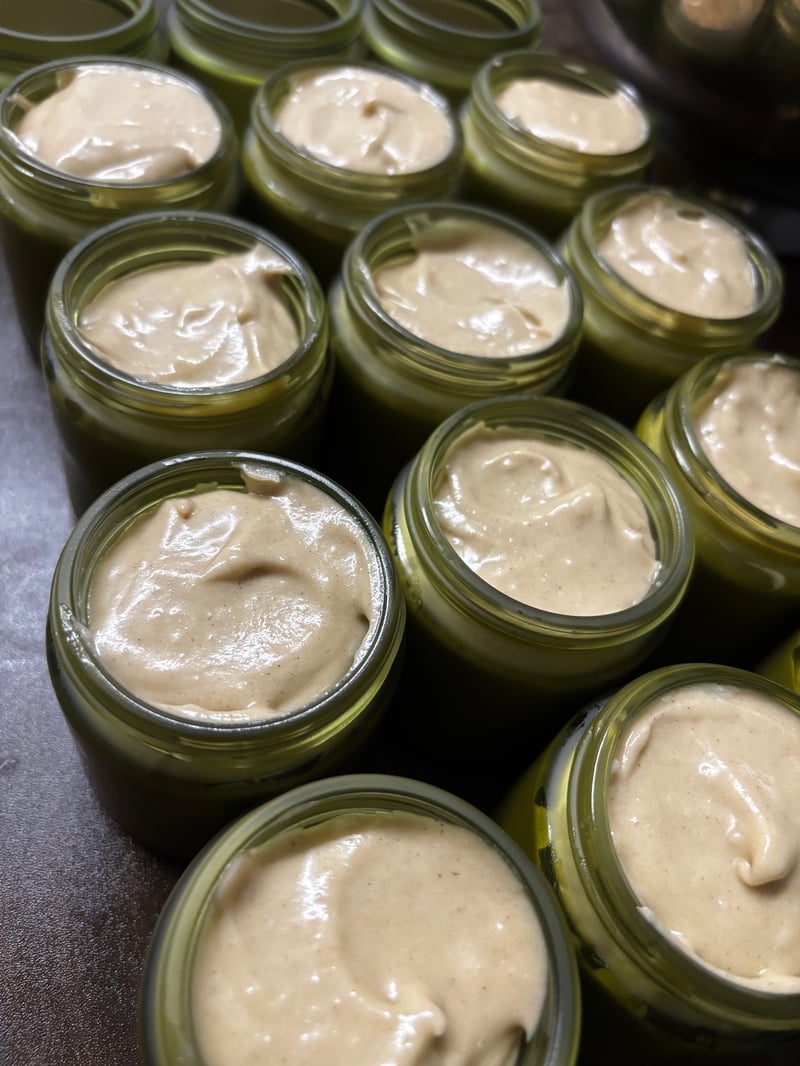 Shea butter, mango butter, sunflower oil infused with oatmeal, chaga, chamomile, lemongrass, veg glycerin, therapeutic grade vanilla & lemon essential oils